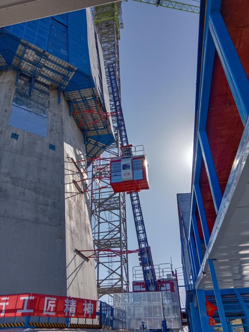 廊坊凱博建設(shè)機(jī)械科技有限公司根據(jù)枝江百里洲長(zhǎng)江大橋的外形和具體施工要求,提供了SC200型斜直兩用施工升降機(jī)設(shè)備。該型升降機(jī)適用于外立面呈異型或變斜度大的橋塔、煙囪等建筑物施工中,在不增加任何部件的情況下可滿足在不同斜度建筑物的使用要求,能做到在0~15°之間任意變換角度,具有良好的適應(yīng)性。