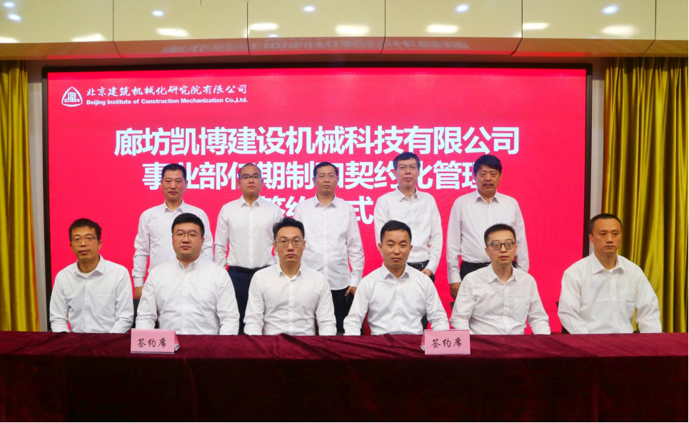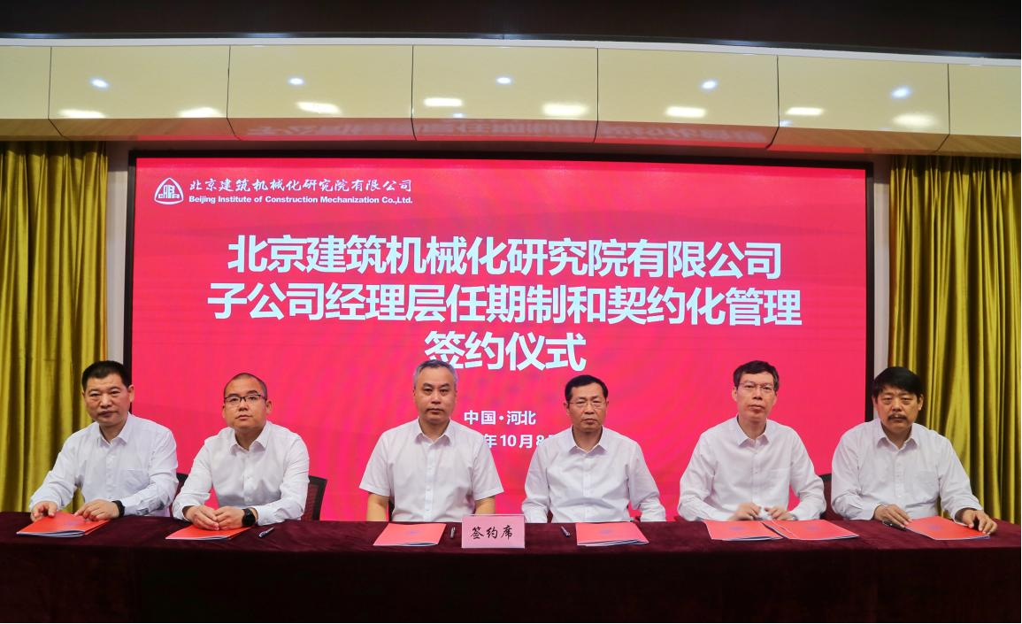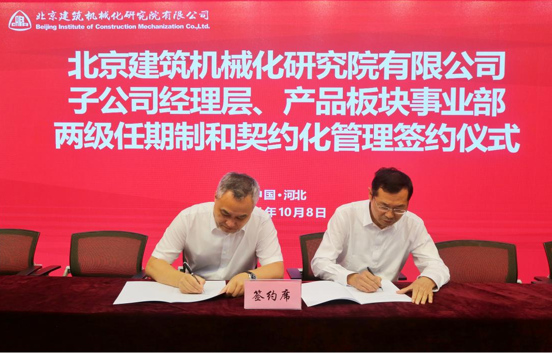 10月8日,北京建機院舉行所屬子公司廊坊凱博建設(shè)機械科技有限公司以及公司所屬事業(yè)部兩級經(jīng)理層成員任期制與契約化管理簽約儀式。北京建機院領(lǐng)導、公司部門以上負責人等共計80余人參加簽約儀式。